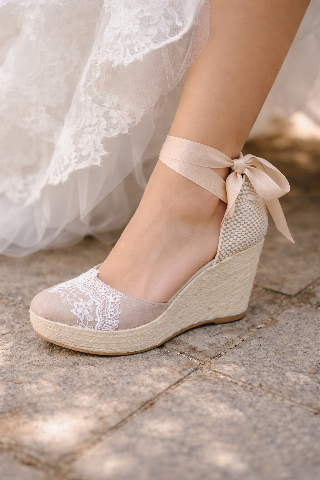 Cuñas de novia modelo 293 en color beig/arena, también llamadas esparteñas de novia.