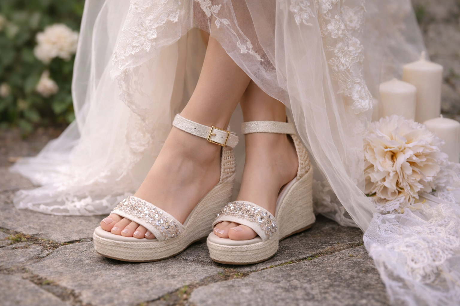 Cuñas de novia, con pedrería y detalles especiales.