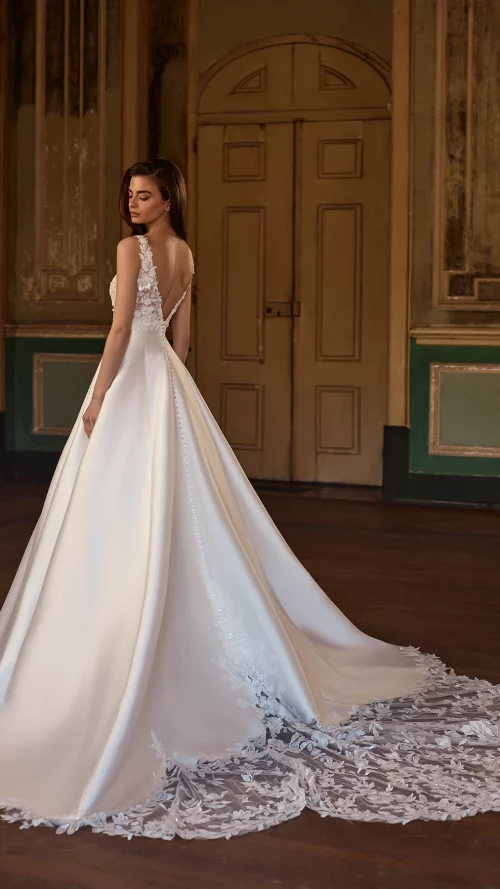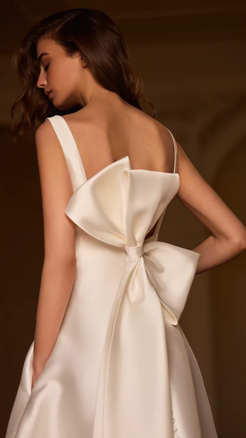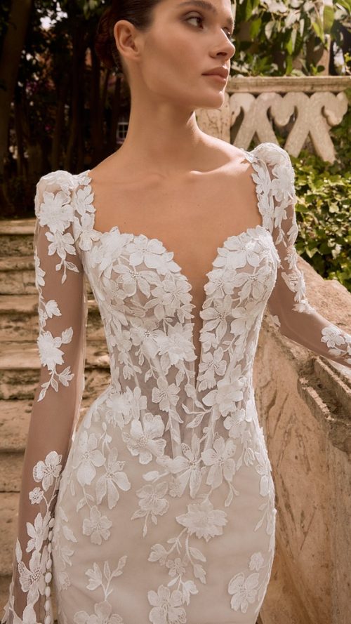 Desde escotes cuadrados y espaldas abiertas, hasta mangas largas de efecto segunda piel o siluetas sirena que acarician el cuerpo con naturalidad… Esta colección destila equilibrio, pureza y buen gusto en cada puntada.