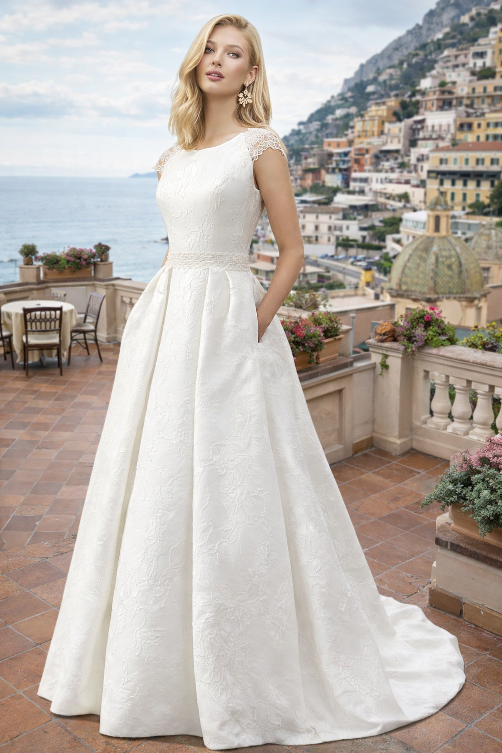 • ¿PUEDO PERSONALIZAR ESTE VESTIDO?Sí, según el modelo se pueden hacer variaciones en el largo de la cola, en el largo de las mangas y en la forma y/o profundidad del escote.